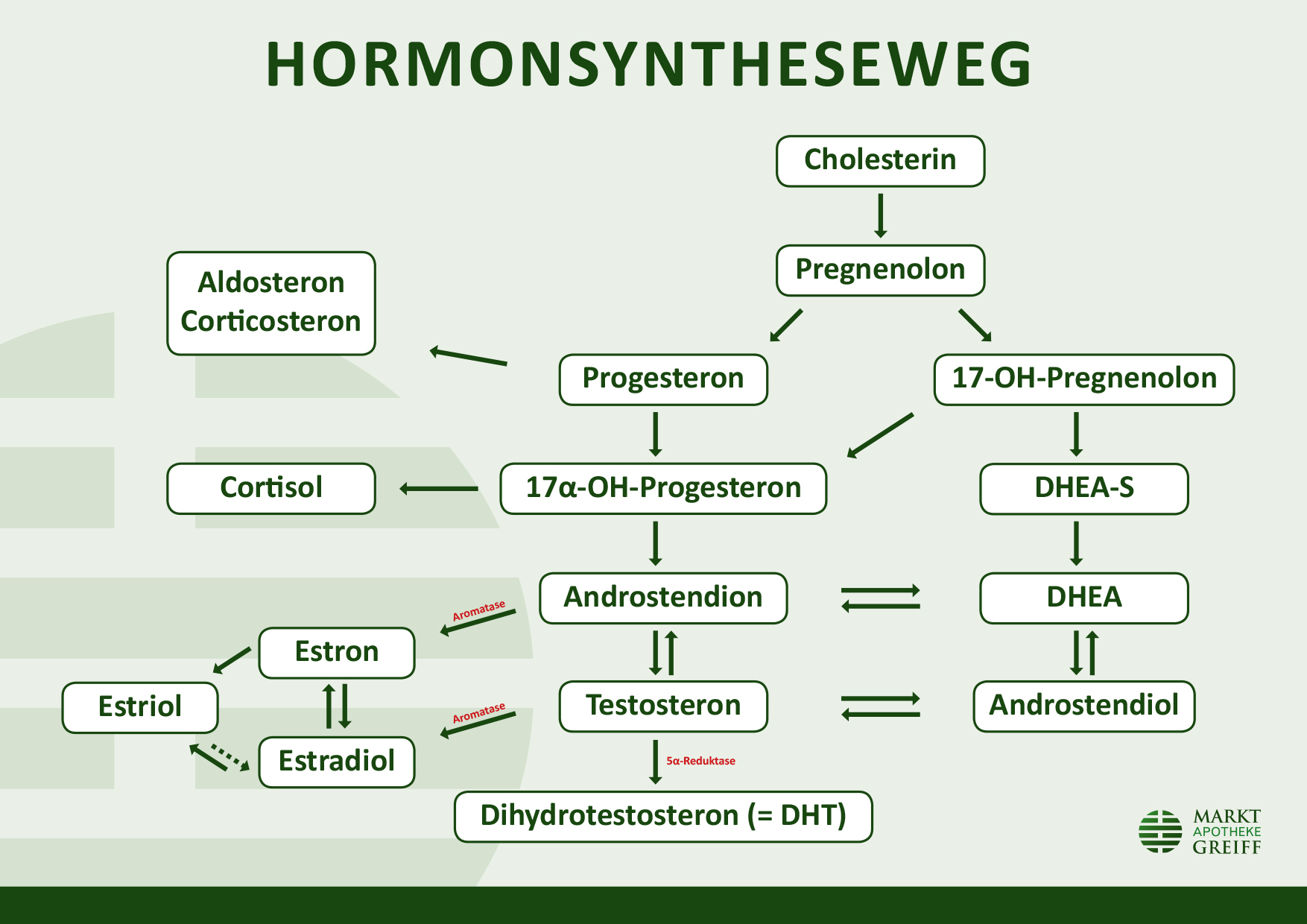 Aus dem Cholesterin wird als erstes Hormon das Pregnenolon gebildet. Pregnenolon wird auch als die „Mutter der Steroidhormone“ bezeichnet.